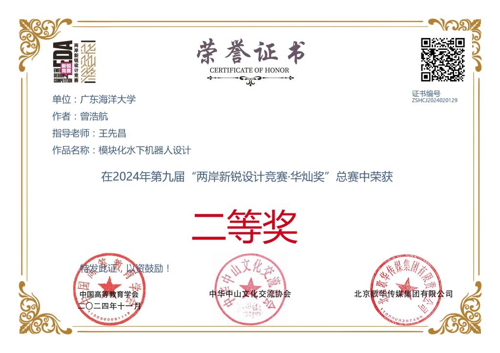 2 英国威廉希尔公司 模块化水下机器人设计 曾浩航 王先昌 全国二等奖