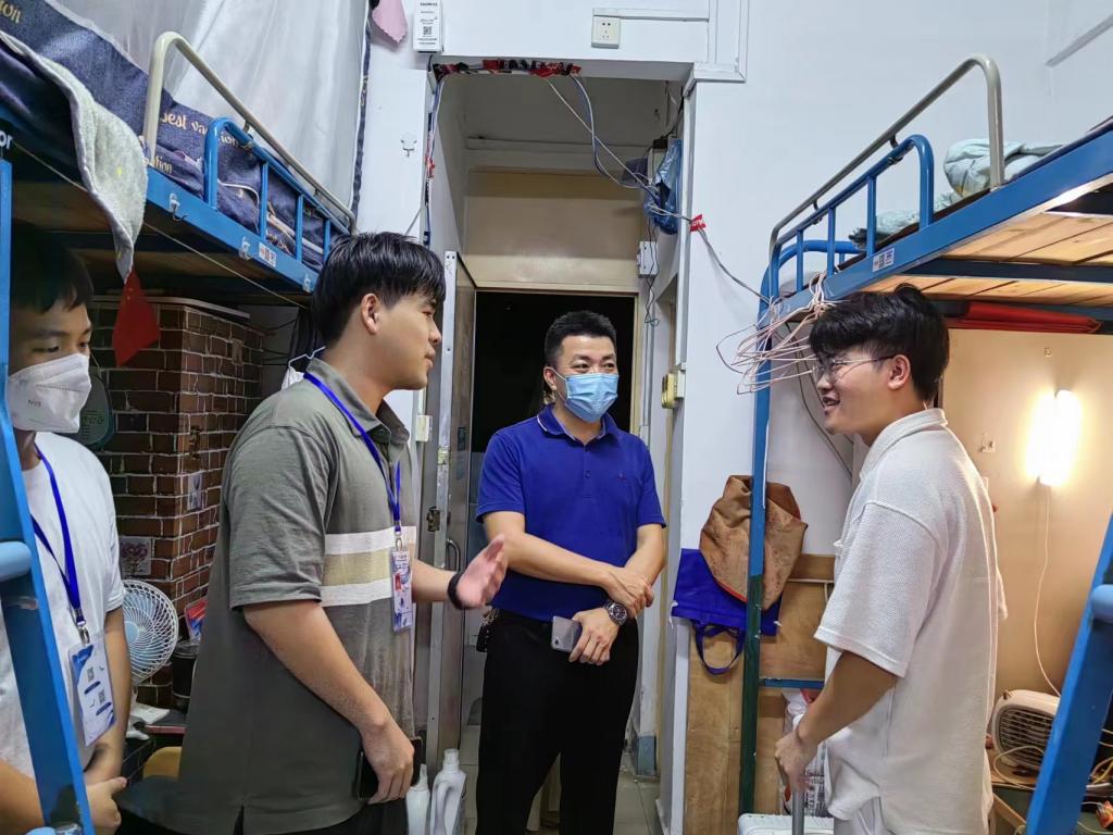 2022年秋季学期开学伊始,为推进学院“三全育人”工作,深入了解返校员工的思想动态、网络上课情况及生活心理状况,8月29日晚,公司党委副书记钟桂安带队深入员工宿舍走访,关心和帮助员工。