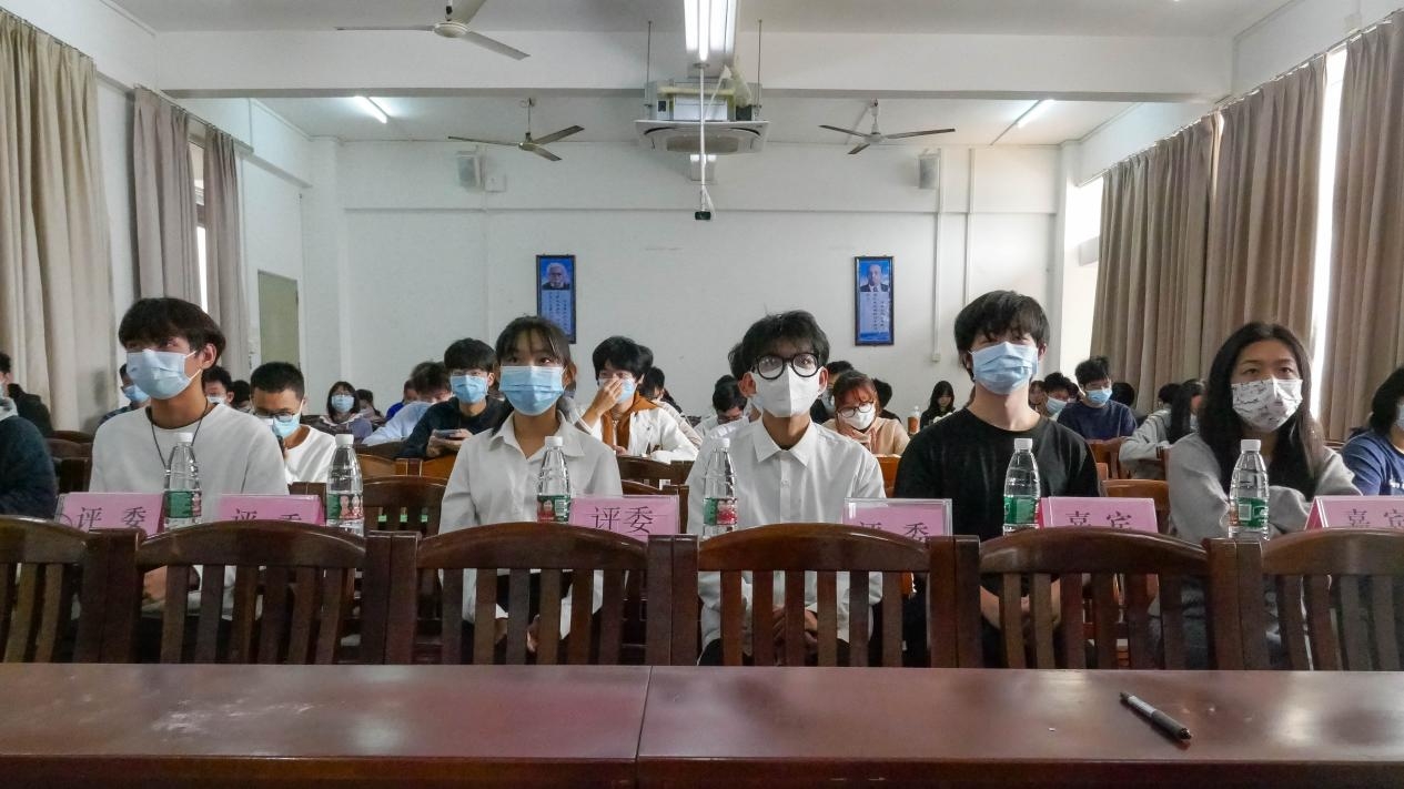 在比赛过程中,参赛选手们有序地上台演讲,首先进行三分钟的主题演讲,然后任意选取其中一个即兴演讲主题,思考30秒后开始1分钟的即兴演讲。选手们慷慨激昂的演讲,回顾了祖国百年奋斗的伟大征程,抒发了要争做百年奋斗青年的见解,立下做时代好青年的斗志。