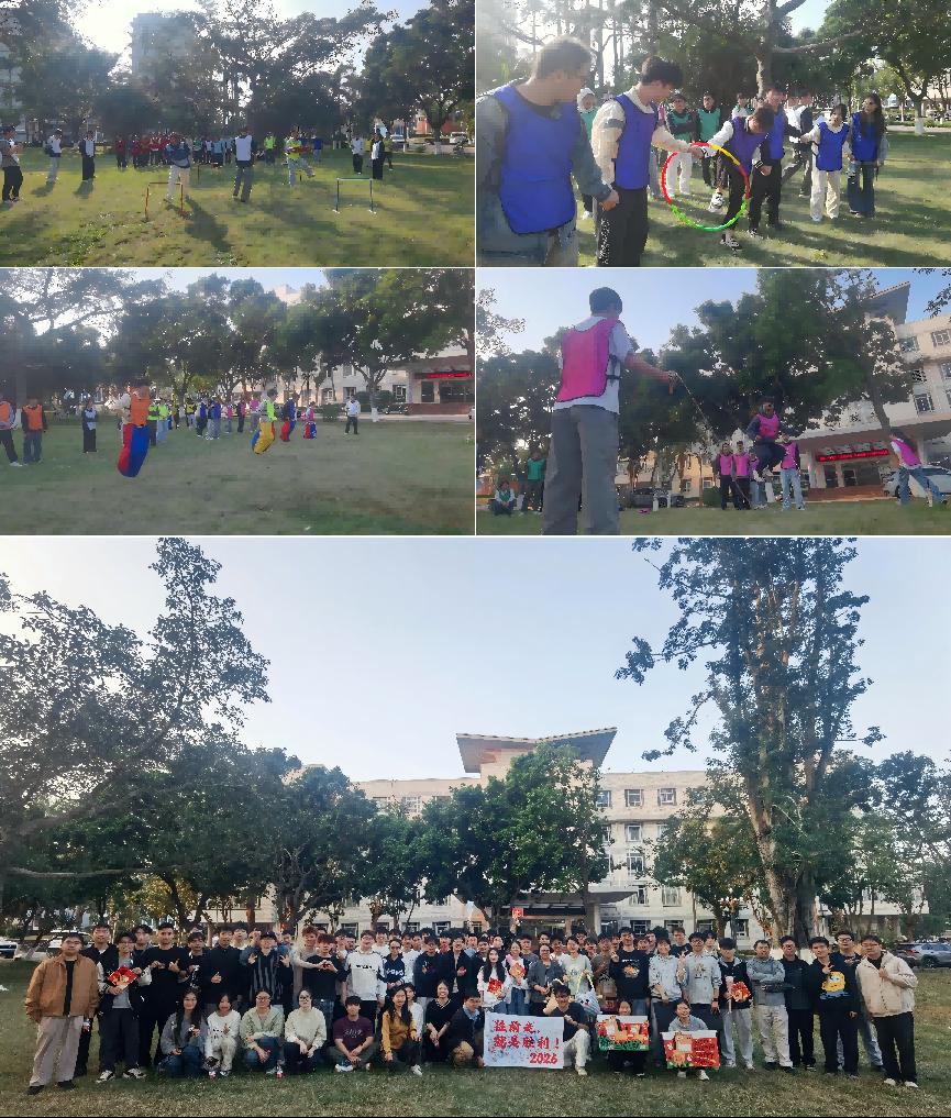 趣味运动会以“友谊第一、比赛第二”为宗旨,在保证安全的前提下,精心设计了呼啦圈接力、四平八稳送球进洞、两人三足、袋鼠蹦蹦跳、共跳同心绳等五个趣味项目。现场洋溢着热烈欢快的气氛,同学们全身心投入比赛,在奔跑跳跃中释放活力,在默契配合中凝聚力量,师生们在欢声笑语中充分体验了团队合作的快乐与运动竞技的激情。本次趣味运动会充分展示了2025级研究生们的青春朝气,同学们普遍反映,这次活动不仅有效锻炼了身体、舒缓了学业压力,还进一步强化了集体荣誉感和团队协作意识,为不同院系员工搭建了交流互动的平台,促进了跨院系情谊的建立。