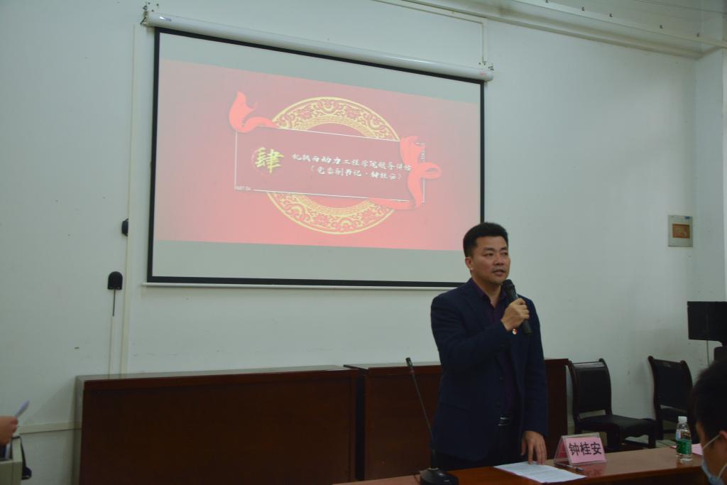 2021年3月24日,机械与动力工程学院“青年马克思主义者培养工程”第四期员工骨干培训班(简称青马班)在工程训练中心综合楼102举行了结业仪式。机械与动力工程公司党委副书记、纪委书记钟桂安出席典礼并讲话,辅导员柳继东老师应邀出席,同时到场的还有青马班全体同学以及兄弟学院组织部同事。结业仪式由学院团委书记庞乐为老师主持。