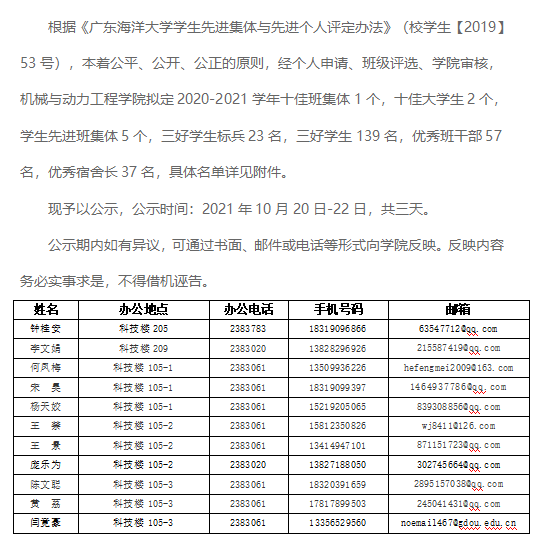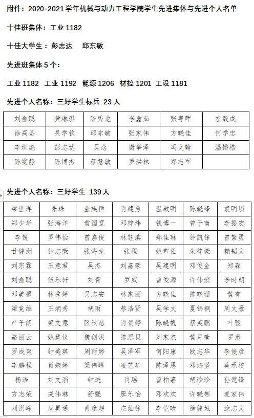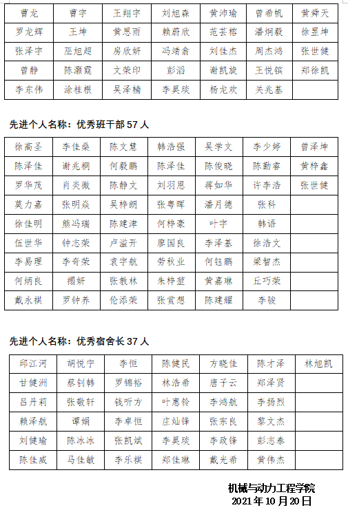 2020-2021学年机械与动力工程学院员工先进集体与先进个人名单公示