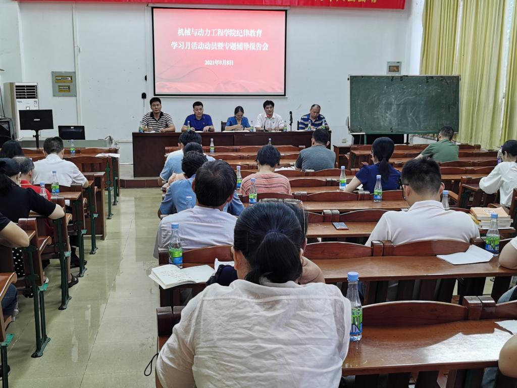 9月8日下午,机械与动力工程学院在工程训练中心102会议室召开2021年纪律教育学习月活动动员暨专题辅导报告会,会议由公司经理俞国燕主持。学院全体教职工党员和科级以上干部共70人参加了会议。
