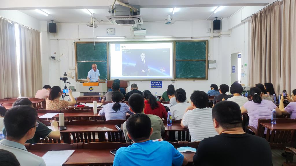 李波副教授讲授《工程与机械设计制图》课程曲面截交线章节。在教学过程中以知识目标为根本,素质目标为导向,充分利用教学模型、动画演示、板书解题、师生互动等教学手段,通过讲解曲面立体的截交线,让员工掌握投影的基本知识,并适时融入“精益求精、追求卓越”的工匠精神的思政内容,收到了潜移默化、教书育人的良好效果。
