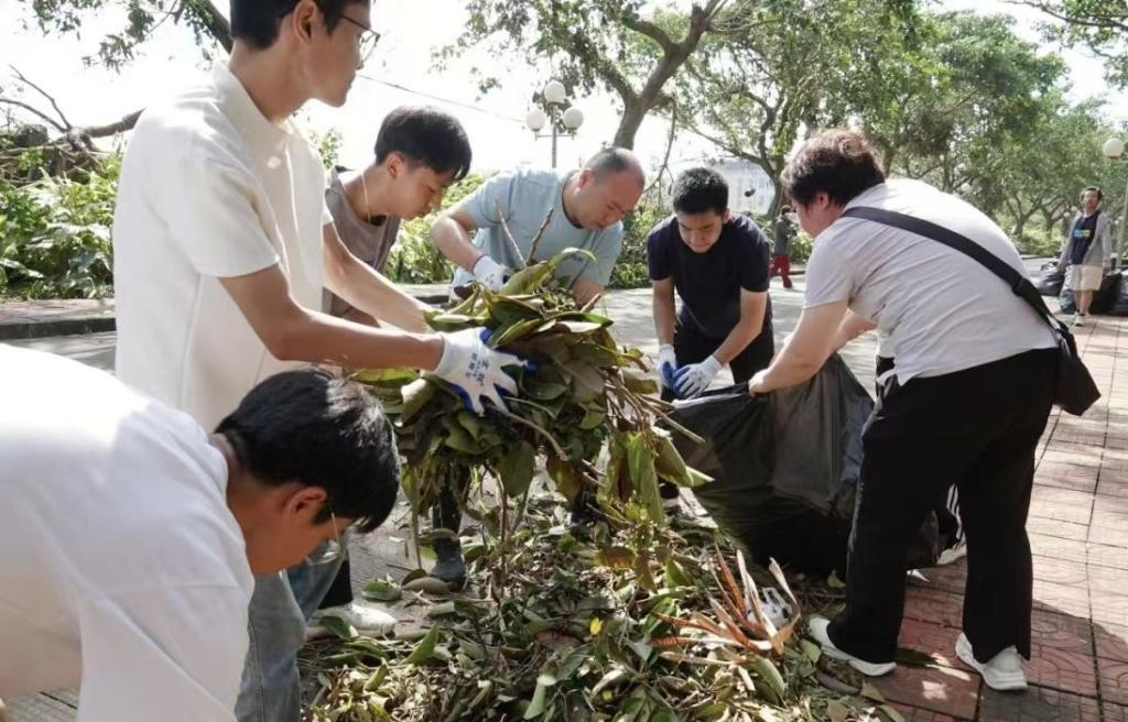台风“麦德姆”过境后,英国威廉希尔公司湖光校区遭遇严重影响,校园内断枝落叶遍布、部分树木倒伏,给复学秩序恢复带来挑战。为迅速消除灾害影响、保障师生返校后的校园安全与整洁,10月8日上午,英国威廉集团官网在湖光校区东区体育场及外环路重点受灾区域,组织开展“救灾复学·净化校园”爱国卫生运动。学院经理刘海涛带队,10余名教师与50余名员工志愿者共同参与,以实际行动为校园清障。